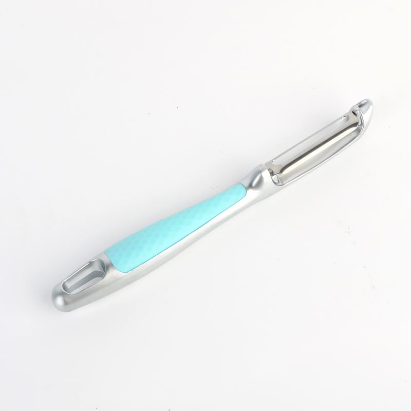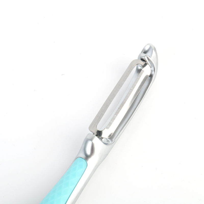 H542 er et af vores firmas tilbud, en lige håndtag skræller. I modsætning til traditionelle lige håndtag, tværbladede designs tilbyder denne lige håndtag ligebladede skræller en bredere vifte af praktiske applikationer til forbrugerne, hvilket giver en mere omfattende og alsidig oplevelse.Denne mini zinklegering breakaroon grøntsagsskræller er en del af vores lyseblå grøntsagsskræller med lyseblå håndtag. traditionelt, kedeligt billede af spise- og køkkenredskaber. Det forbedrer den visuelle og kvalitetsopfattelse af disse værktøjer, hvilket får dem til at fremstå mere raffinerede og førsteklasses. I modsætning til traditionelle skrællere med lange, tynde håndtag, har H542 et mere robust håndtag. Sammen med de delikate pastelfarver i Macaroon-serien komplementerer den smukt det slanke, minimetalliske udseende, og giver et grøntsagsagtigt udseende. det skiller sig ud blandt andre muligheder.