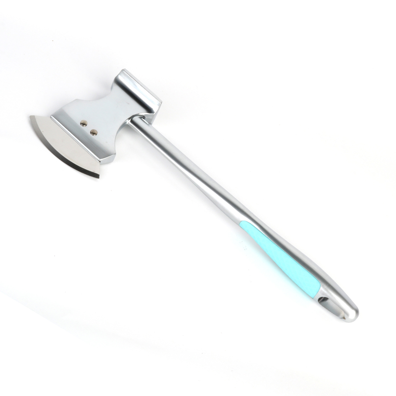 Klingen på pizzaskæreren er lavet af højkvalitets 304 rustfrit stål, og dets design er inspireret af formen af en økse, hvilket giver det et mere praktisk og visuelt tiltalende udseende. Værktøjet er af moderat vægt, hvilket gør det nemt at bruge og alsidigt i dets funktioner. Uanset om det bruges som kødmørningsmiddel eller til at skære pizza, kan bladet også bruges til at fjerne kødbochoner og frugtknive. grøntsager og frugter, når der ikke er andre knive til rådighed.