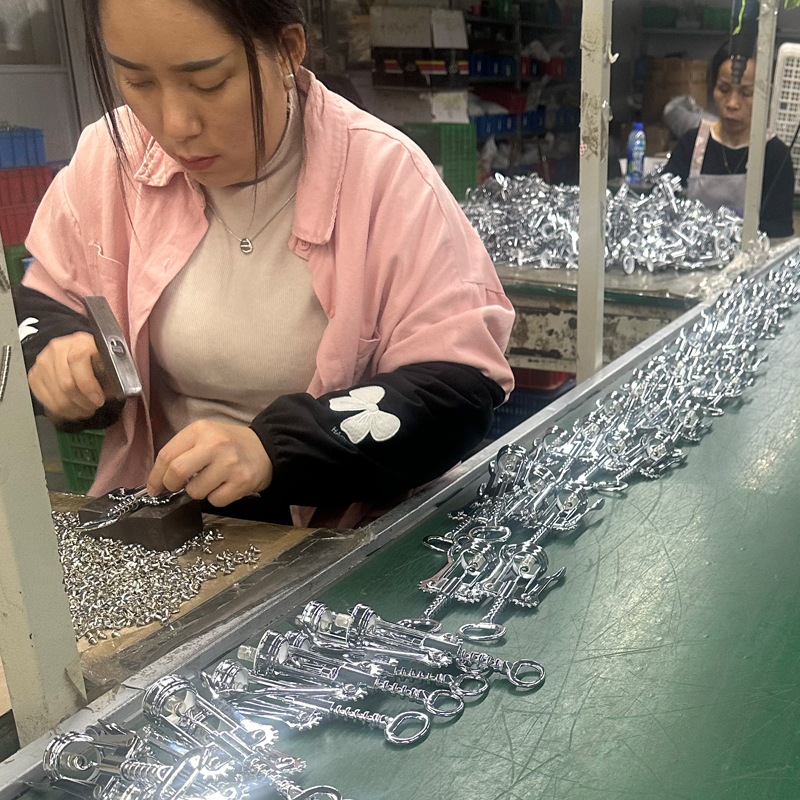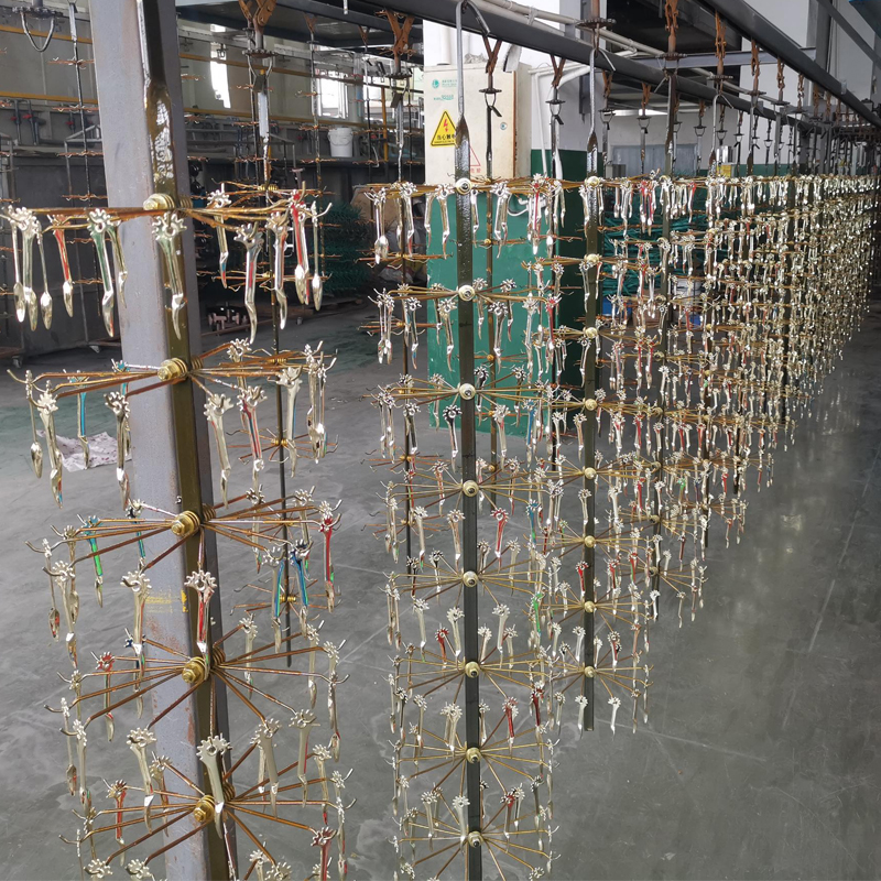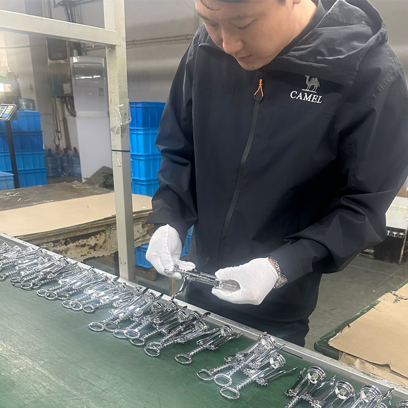 Belægningerne på alle komponenter af proptrækkeren anvender typisk galvanisering eller malingsmetoder, til denne illustration vil vi fokusere på galvanisering. Galvaniseringsbehandlingen udføres af en outsourcet leverandør, som kræver højt specialiserede faciliteter, udstyr og industriingeniører med mange års erfaring inden for deres felt, sammen med adskillige grundlæggende teknikere og opretholder erfarne meget komplekse arbejdsprocesser med 30 år. brancheerfaring, hvilket sikrer produktstabilitet. Dette sikrer også, at forskellige produktionsproblemer, der opstår under fremstillingen, kan løses hurtigt, professionelt og effektivt. Disse arrangementer hjælper med at sikre produktionscyklusserne for varer som vintilbehør, køkkenudstyr og proptrækkere, samtidig med at de understøtter kundernes salgsplaner.