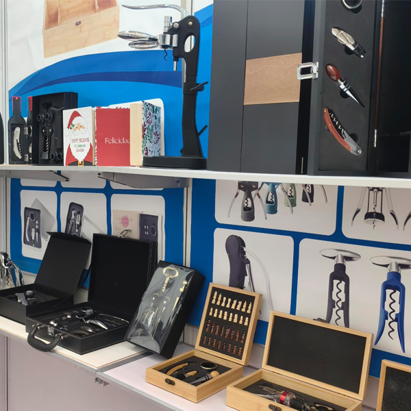 Vores produktsortiment omfatter en række vinåbnere i rustfrit stål og legeret, proptrækkere, champagneværktøj, hvidløgspressere, nøddekiks, dåseåbnere, skrællere, kødmørnere, cocktailrystere, hofteflasker i rustfrit stål og forskellige vinsæt lavet af træ eller PU samt vinkasser.