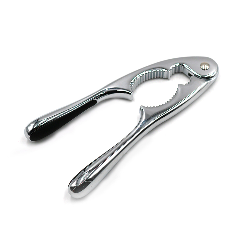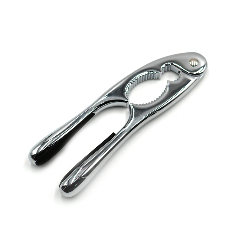 Den multifunktionelle møtrikåbner af zinklegering til køkkenværktøj med dobbeltkæbemekanisme med åbninger i forskellig størrelse, giver enestående alsidighed og rummer forskellige nøddetyper, herunder hårdtskallede valnødder, blødskallede valnødder og endnu større hasselnødder. Dette innovative design giver mulighed for ubesværet knækning af nødder med forskellig diameter og brugervenlig drift, samtidig med at de er strukturvenlige og brugervenlige.